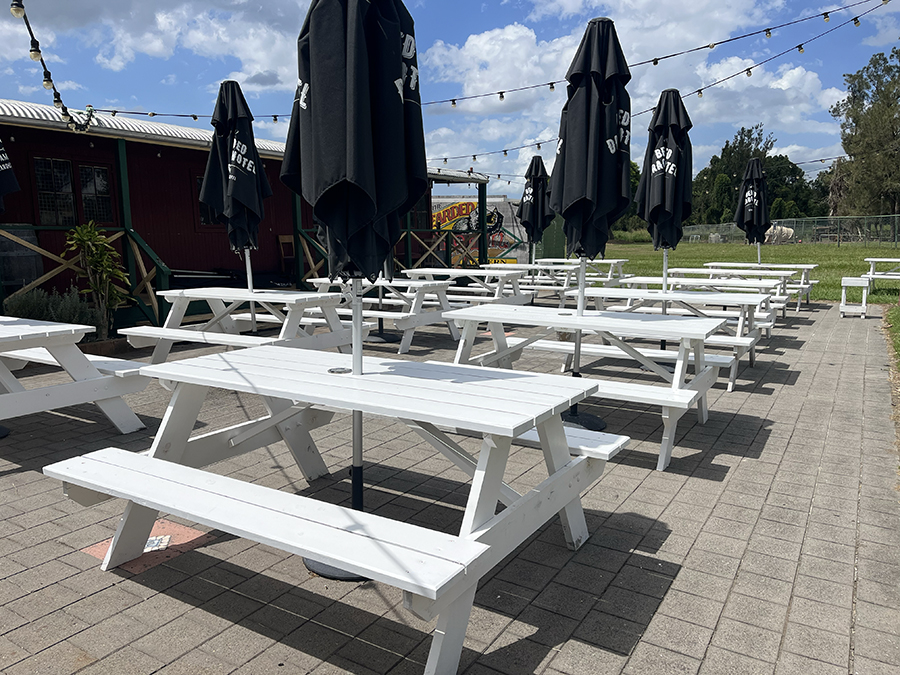 EZY Outdoor Picnic Table constructed from treated pine & available in 2 x finishes.