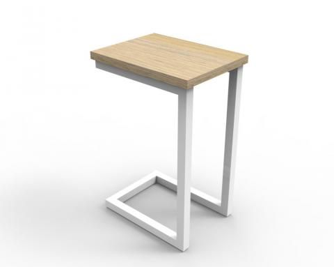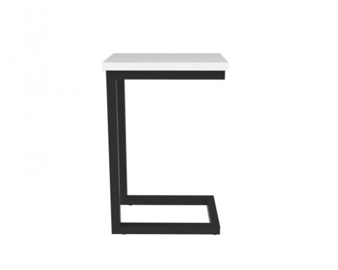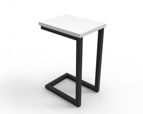 FX Eternity side table features a powdercoat cantilever frame in black or white that slides conveniently under lounges or sofas.