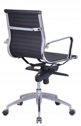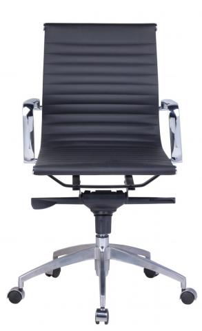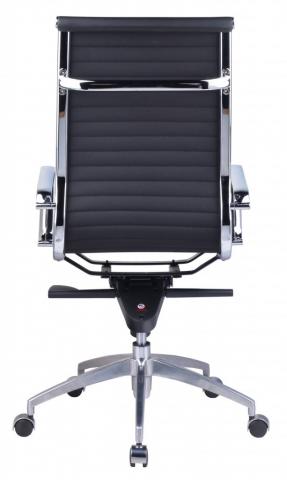 Stylish executive or boardroom back chair, with slimline profile, chrome arms and base. The infinite tilt lock allows the user to recline in multiple positions. Available in medium or high back.