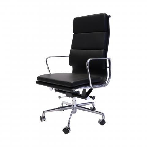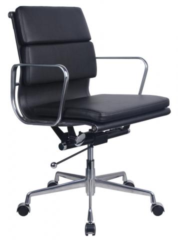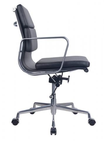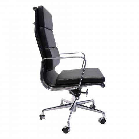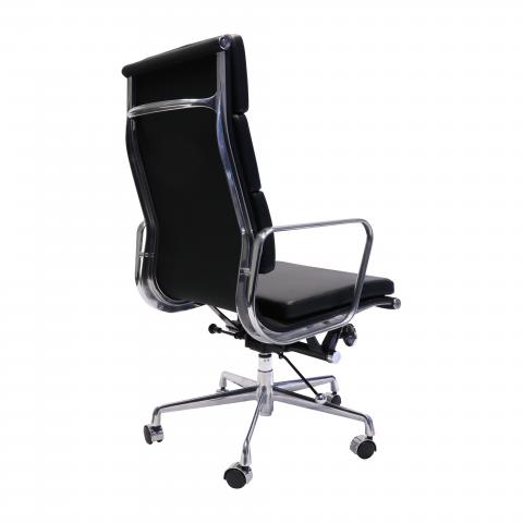 Upholstered in Black PU with a polished aluminium base & arms, single point lock, medium or high back option. Padded back rest detail. Suitable for boardroom or meeting chair. Weight rated to 120kg and comes with a 5 year commercial warranty.