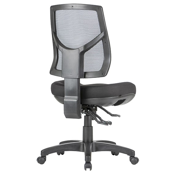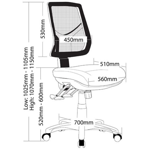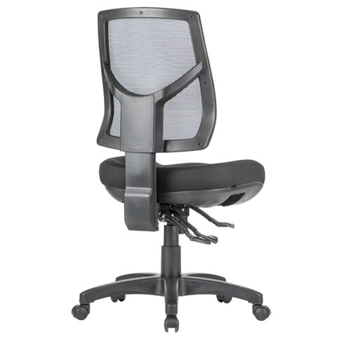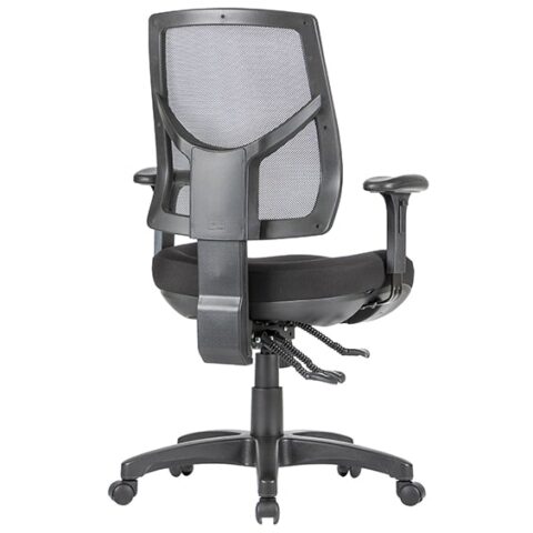 Adjustable seat height. Adjustable back height (ratchet). Adjustable seat and back angle. Adjustable weight tension. Moulded seat foam. Mega big boy seat. Mesh back. 3 lever heavy duty ergonomic mechanism. 700mm black nylon base. Chair NOT available with drafting kit. AFRDI tested to level 6. 7 year warranty. Weight limit is 140kg. Available in standard Metro Black or custom upholstery.