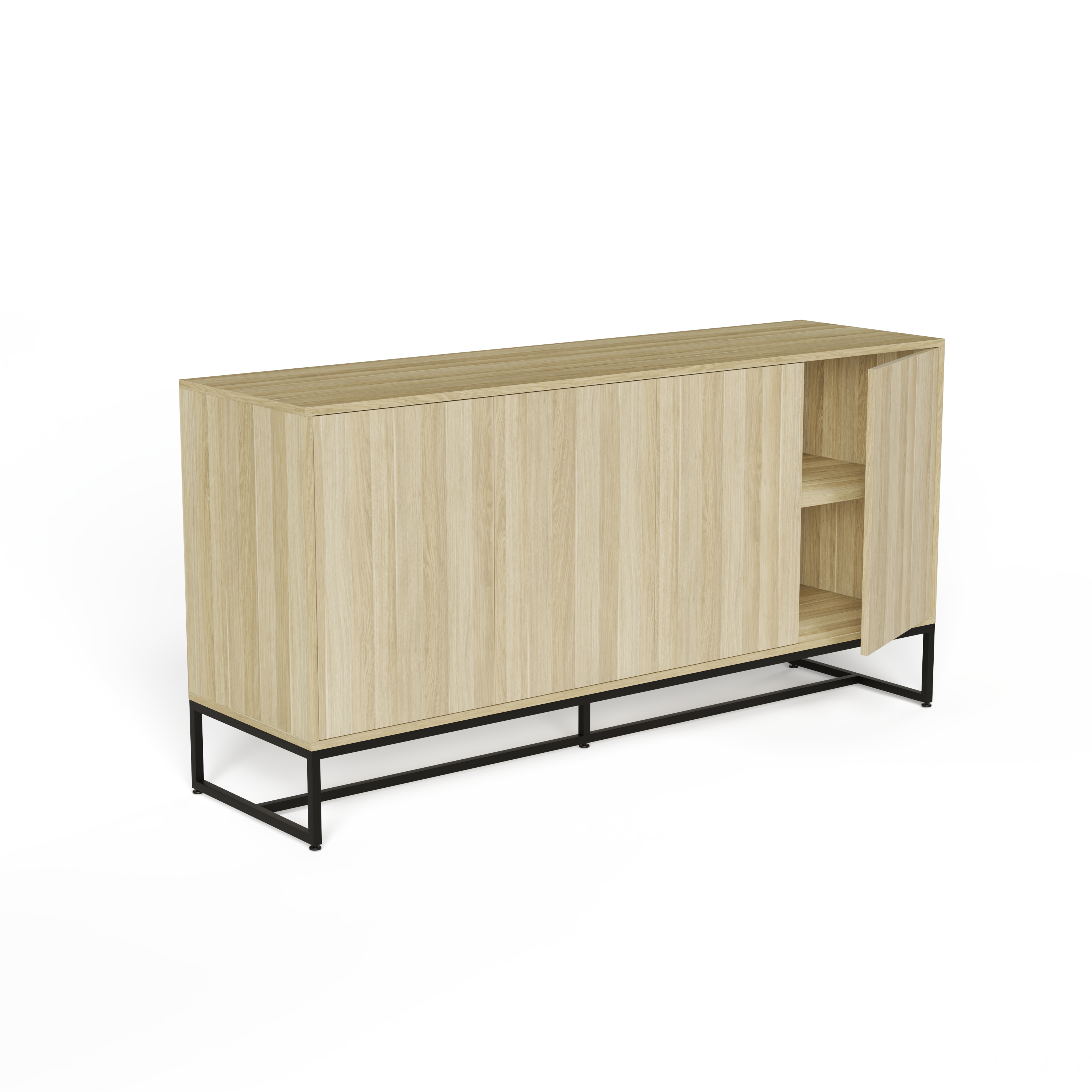 Elevate your workspace with the RED Executive Credenza with Metal Frame, a modern storage solution designed for both style and functionality. Featuring a clean-lined profile, this credenza showcases a warm Natural Oak finish paired with a sturdy black metal frame for a sophisticated, industrial inspired look.