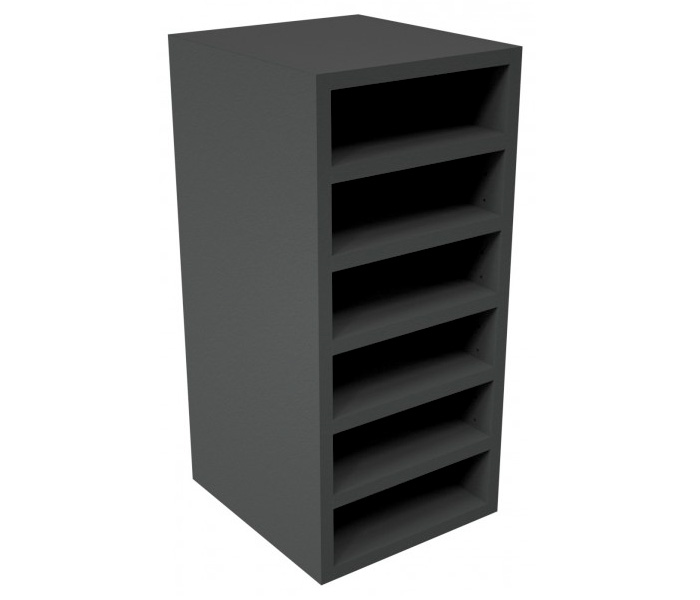 Single column desktop pigeon hole. 25mm tops and sides, with 12mm thick adjustable shelves. 244mmW x 308mmD pigeons.