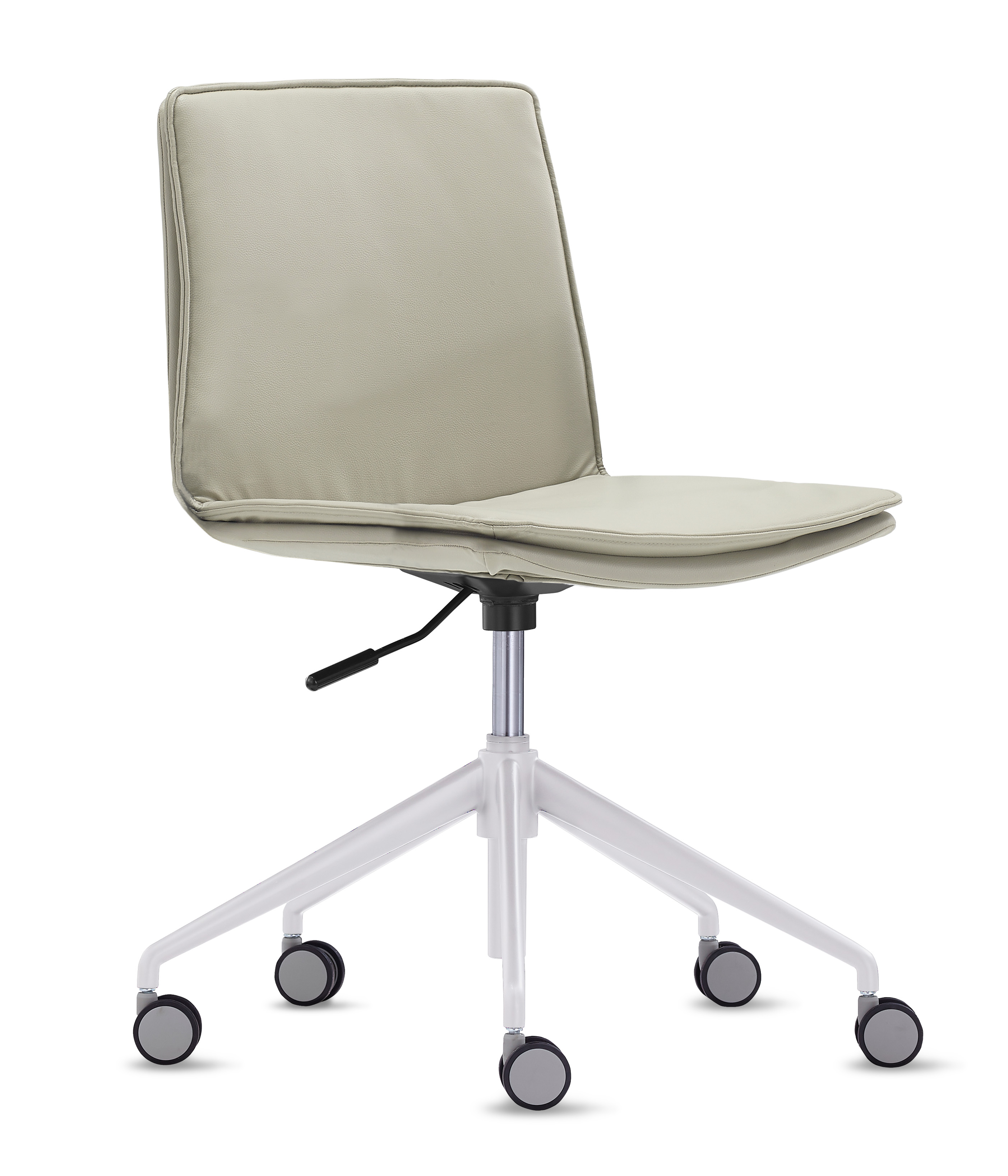 Available in fully upholstered Light Bone Swirl or Tan PU. Featuring a premium 5 Star Black or White Base with unique soft wheel black /grey castors.